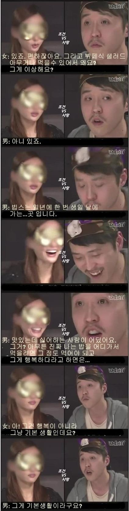 뭐 조건 안볼수는 없겠죠. 근데 저여자는 돈만 많으면 장땡이라는 마인드네요.
