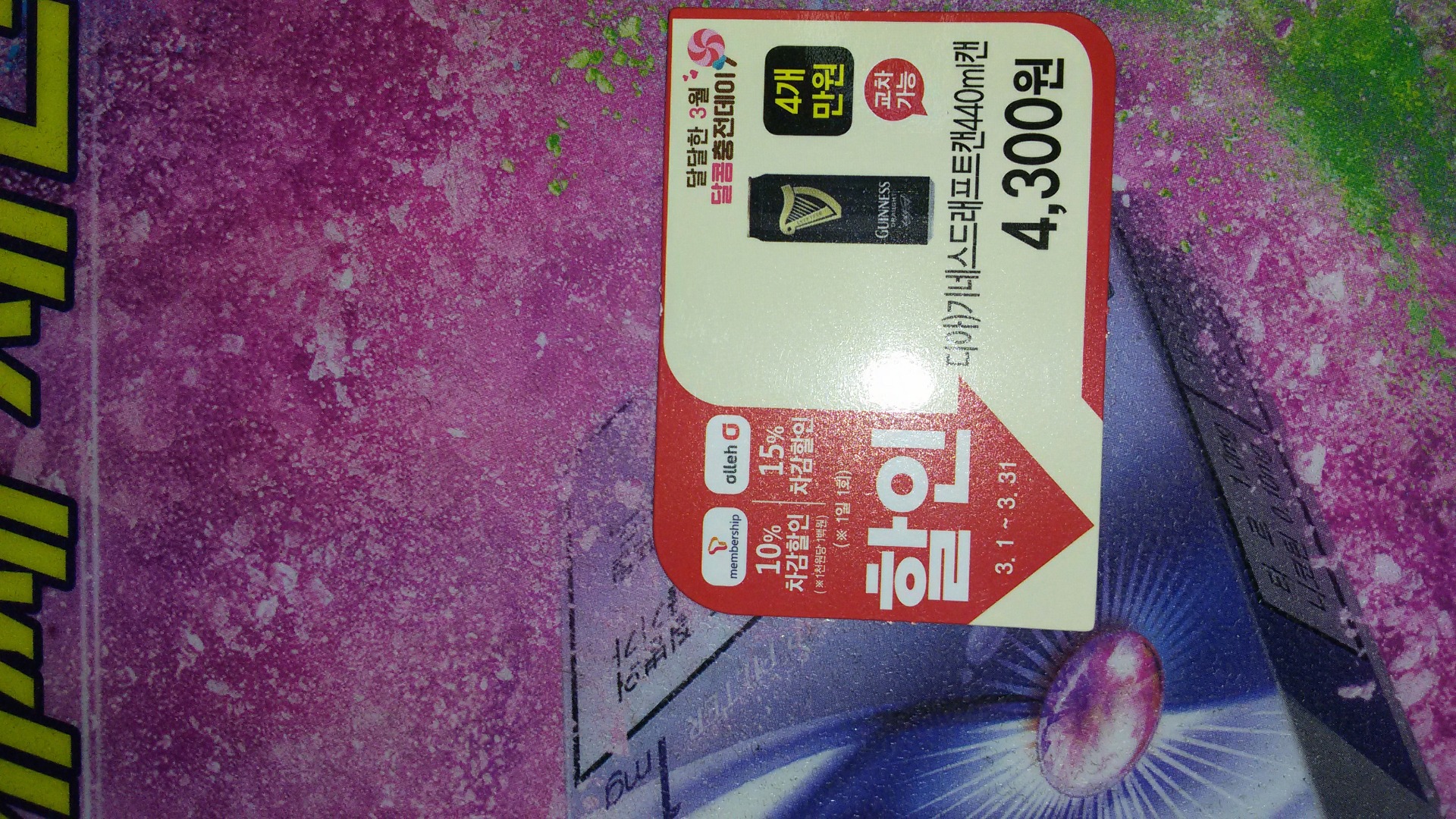 좀 전에 세븐일레븐에서 4캔 1만원 사려고 보는데 자세히 보니 저렇길래
