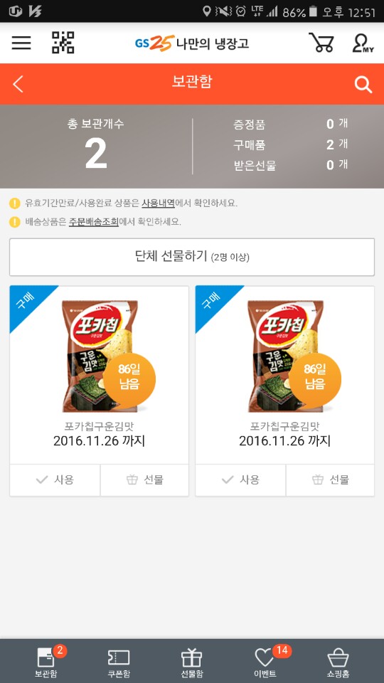포카칩 (구운 김맛) 나눔. 2인 > 자유게시판