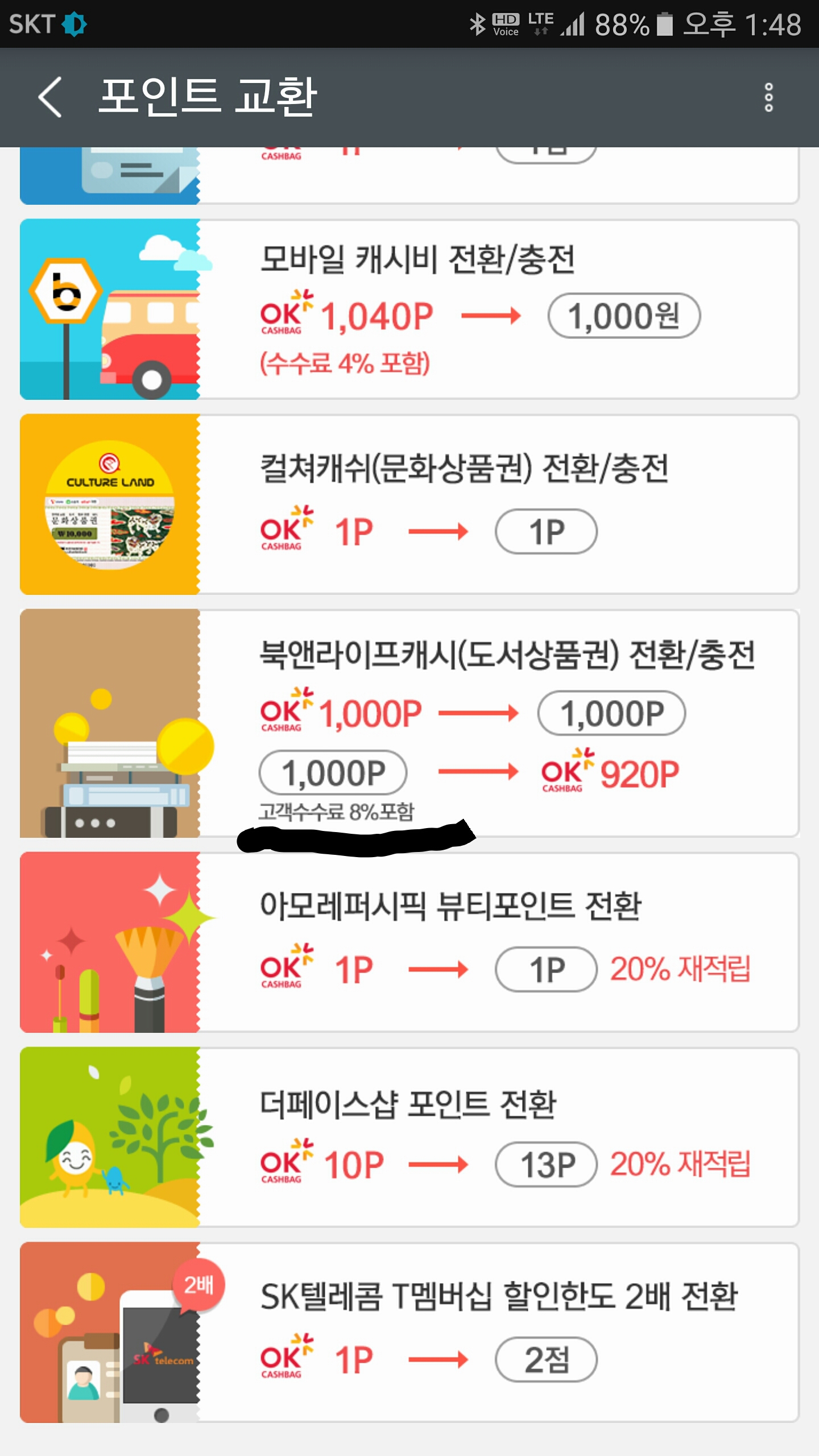 도서문화상품권 OCB전환 수수료 올랐네요..