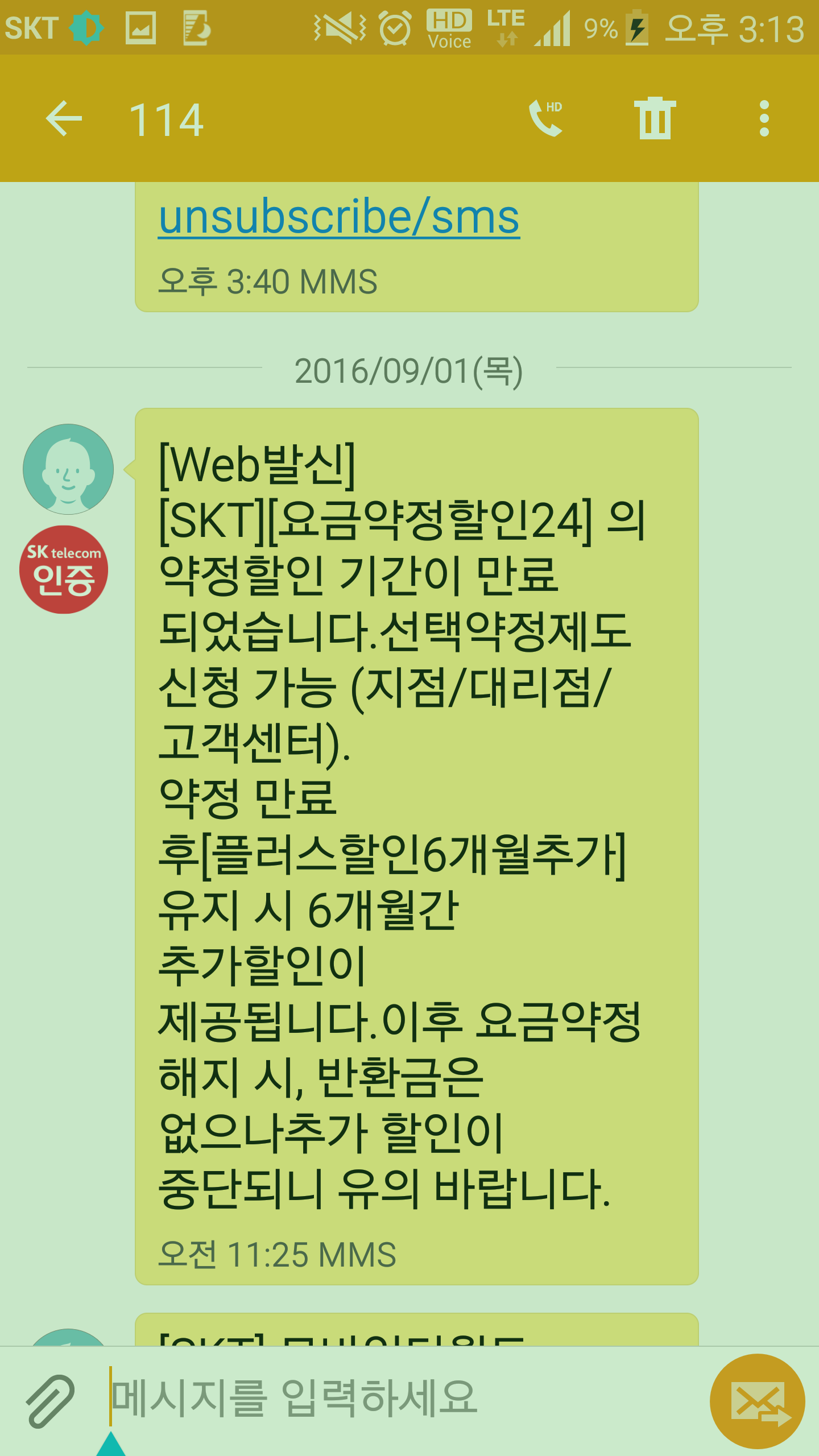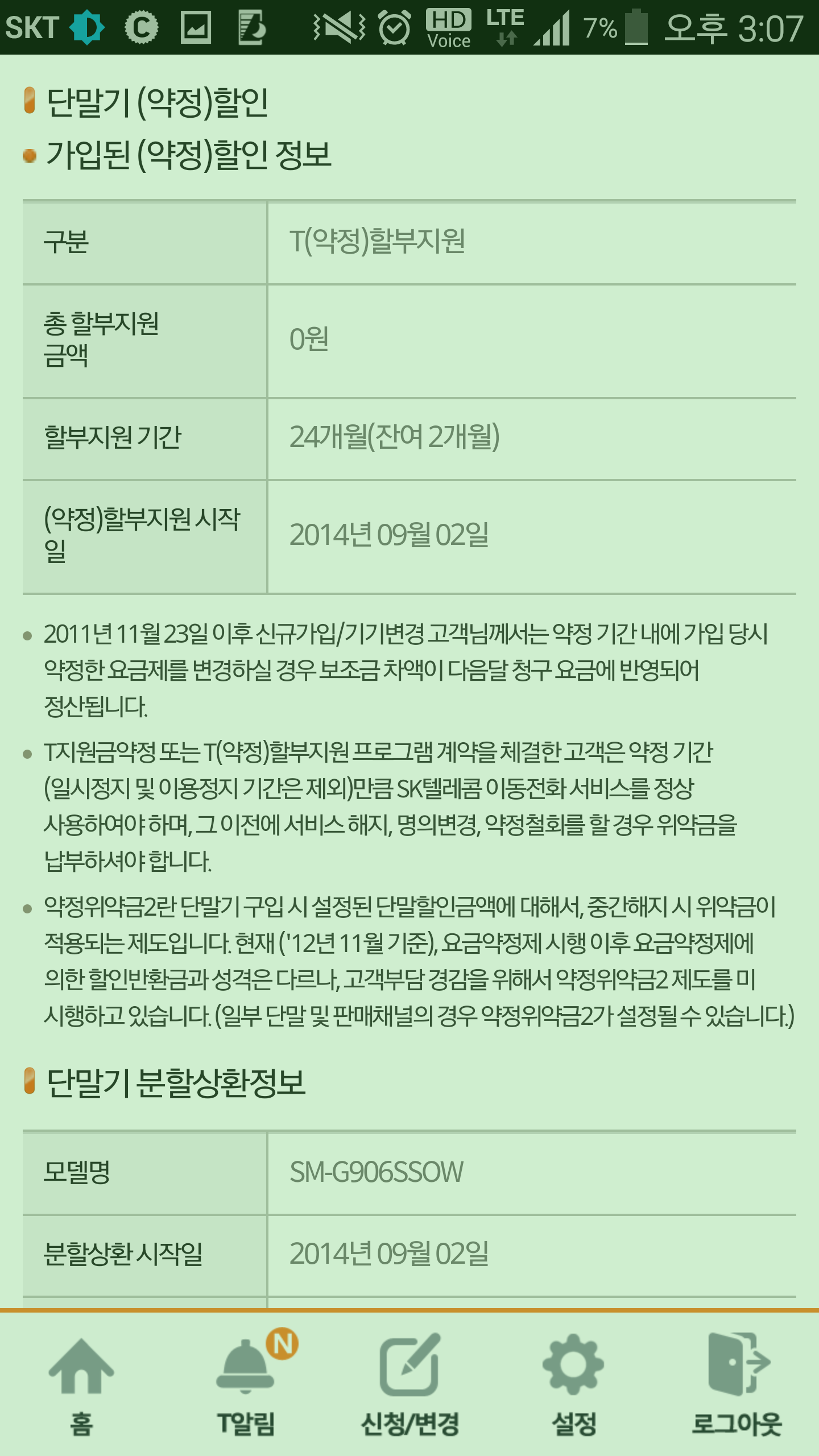 문자는 24개월 약정 끝났으니 요금이 20%할인 가능한 선택약정가입이 가능하다. 는 내용이네요. 안해도 앞으로 6개월간은 요금할인 혜택이 계속되구요. |