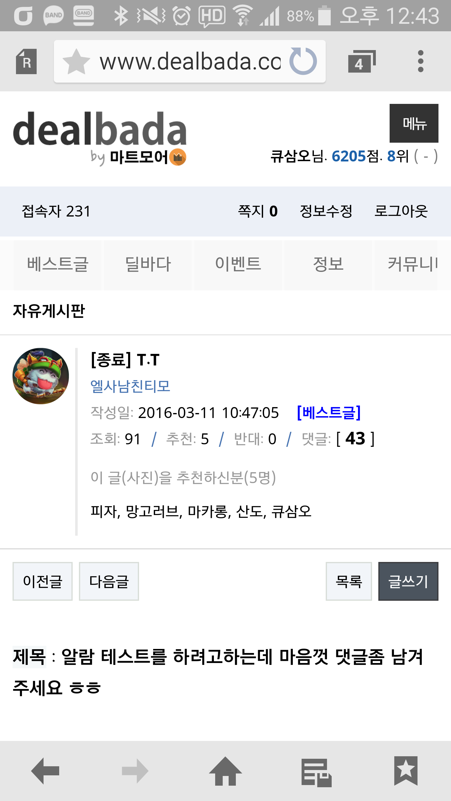 모바일에서 추천 확인은 화면이 작아서 빼놓으셨다고 하네요 ㅋㅋ