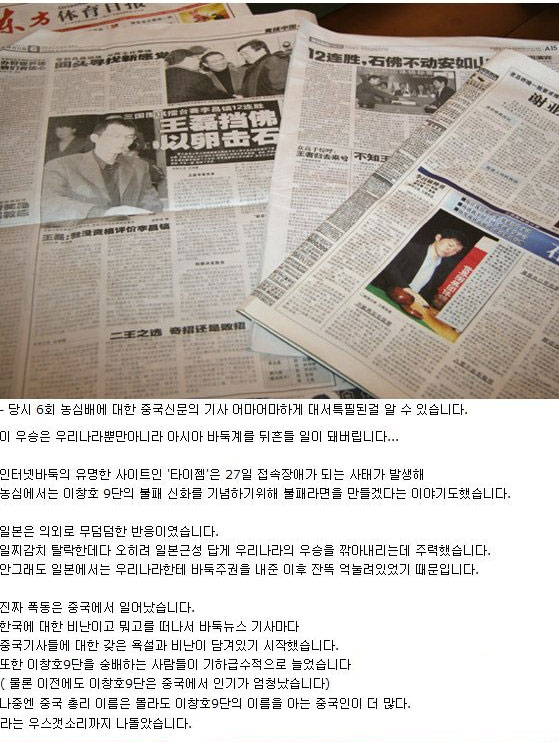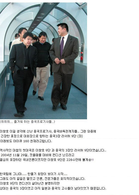 중국에선 이창호 인기가 아이돌 저리가라더라구요.