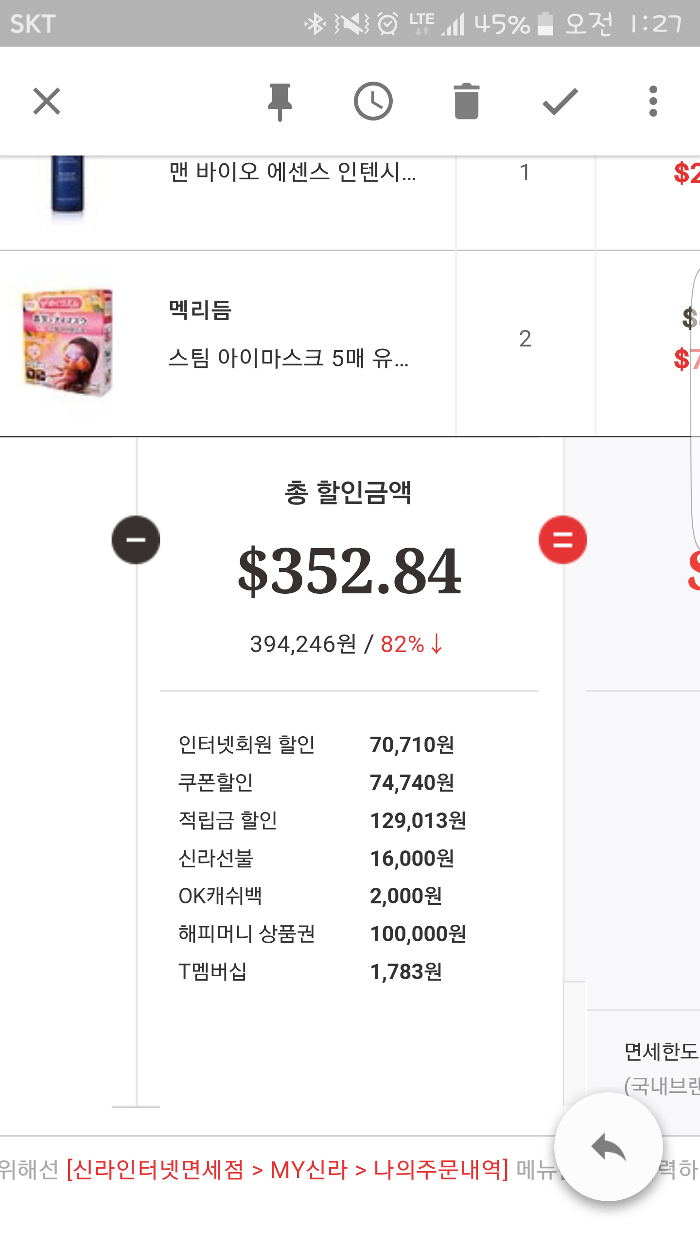해피머니랑 적립금 둘다 쓰신거 아닌가요? ㅎㅎ