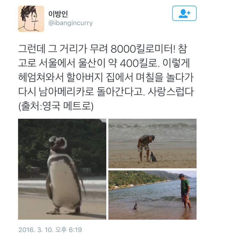실로 경이롭네요.. 펭귄과 사람의 교감도 가능하군요 |