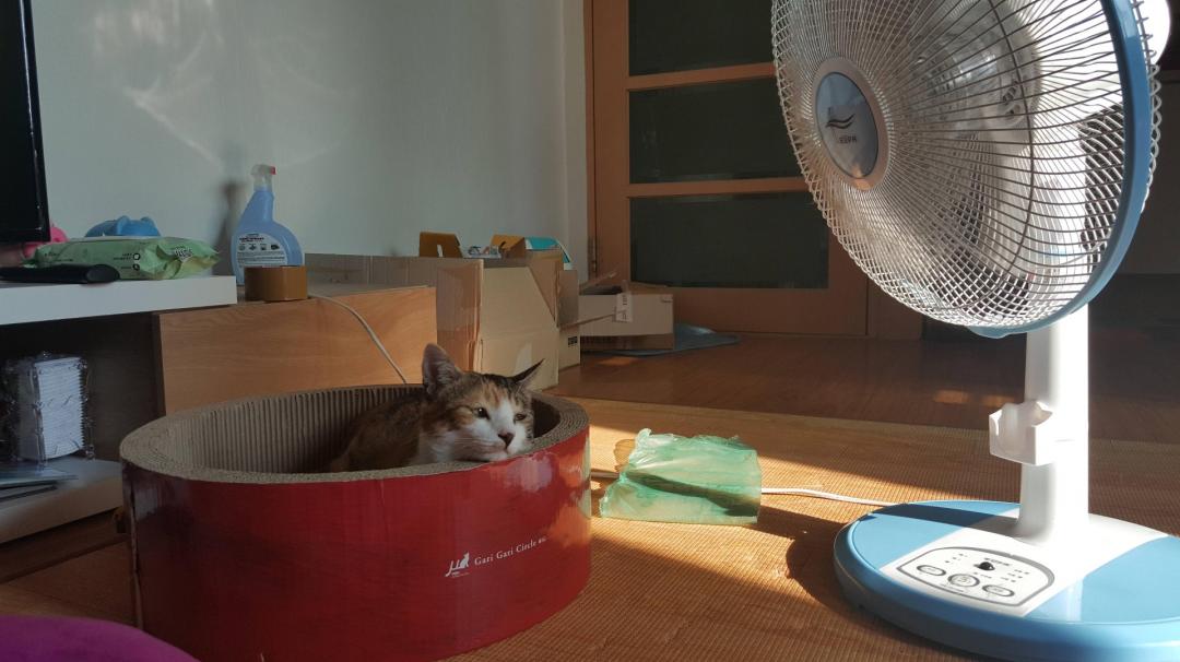 하핫.. 저 자식 여름에 선풍기독차지하구요 에어컨밑에 캣타워뒀더니 혼자쓰구요 .....