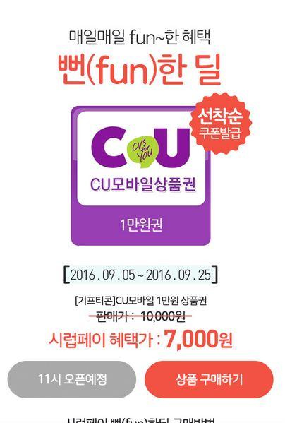 모바일에서 왼쪽에 11시 오픈예정이 쿠폰으로 바뀝니다. 시럽페이로 결제해야 합니다
