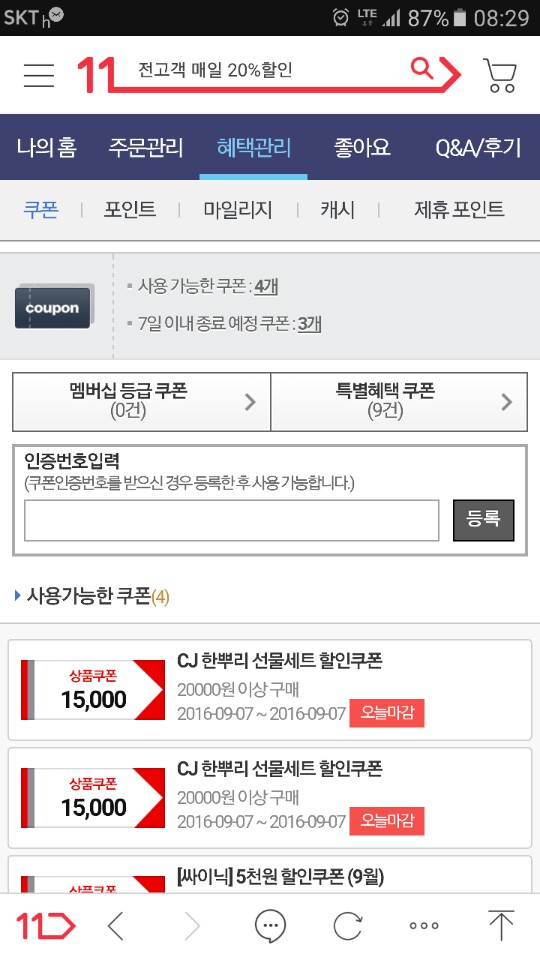 11번가 CJ한뿌리 할인쿠폰이요