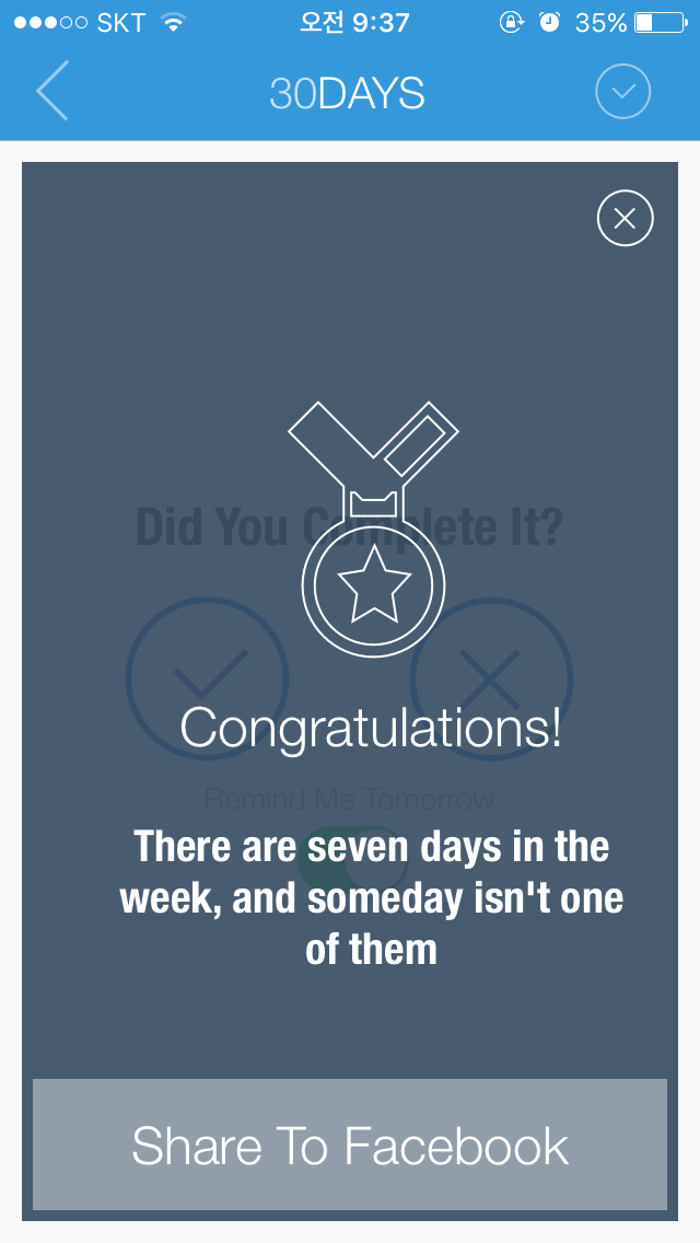 2일차 끝내고 확인 누르니 이런 화면이 뙇!