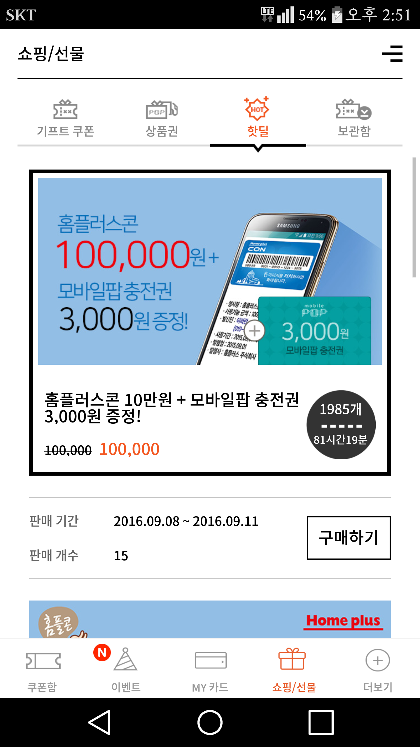 홈플러스 상품권이 좋은데 아쉽죠 |