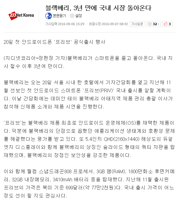 노트7 나오면서 블랙베리 좀 묻힌거 같은데.. 아련 ㅠ
