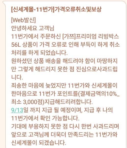 국내핫딜에 리빙박스 취소 문자가 오다니..ㅠㅠ