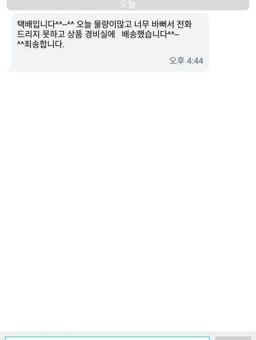문자라도 온건 양반이네요ㅜ 저흰 박스구겨져서오고 말없이 경비실에 갖다놔요ㅋㅋ | ||