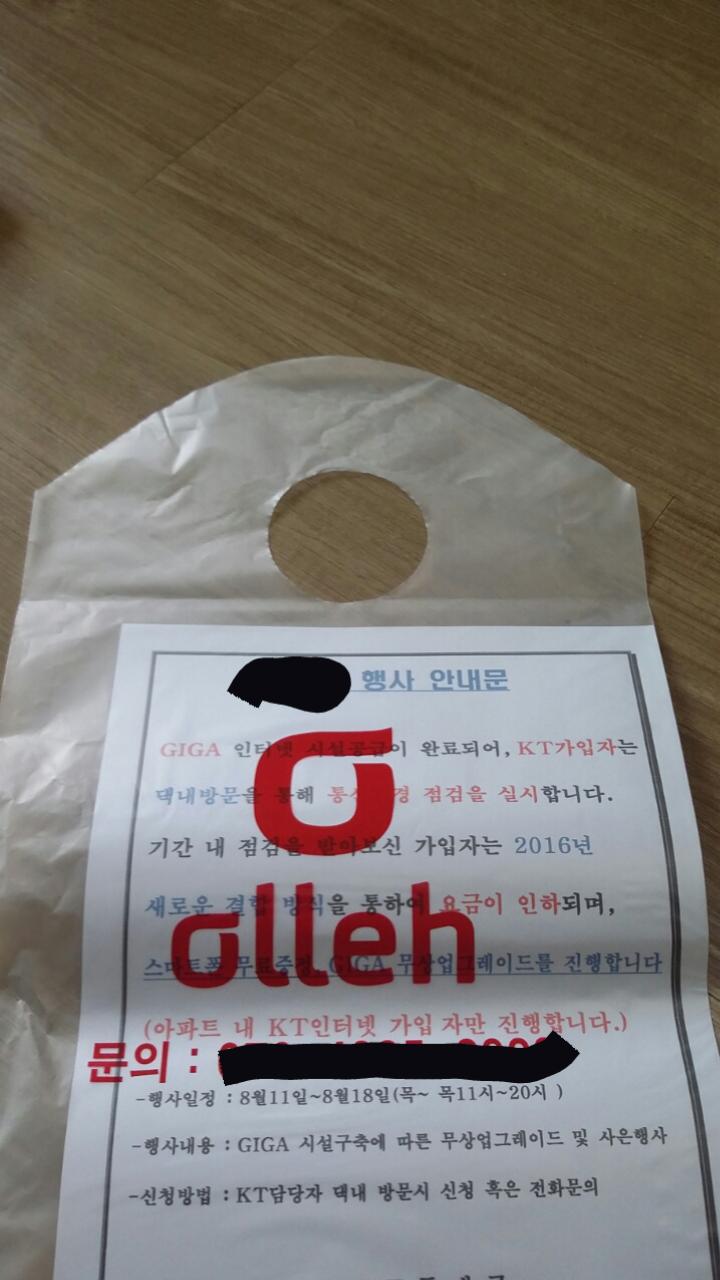 문을여니 복장에 Kt명함 단 직원이 있더군요 아파트에 kt기가 망이 깔린다고 하네요 그래서 점검을 할거라네요