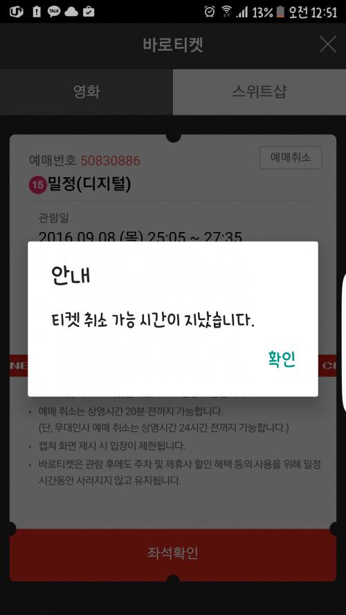 아 낼 저녁에 영화봐야지~하고 당일저녁으로 잡아놓고 담날 볼려고 확인해보니까.......ㅠ...내티켓두장...ㅠ