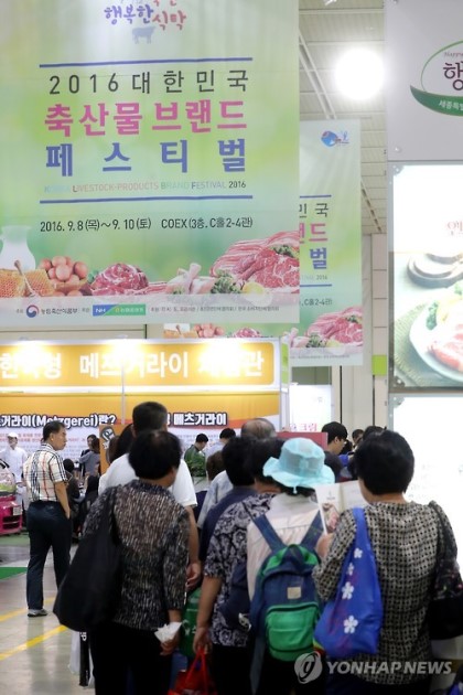 10. 2016년 ‘브랜드 축산물 페스티벌’ → 9월 8일 ~ 10일 코엑스. 농림부, 농협 주최 주관. 전국 50여개 한우, 한돈 브랜드 참여, 홍보와 판매.(연합뉴스 외) ▼사진