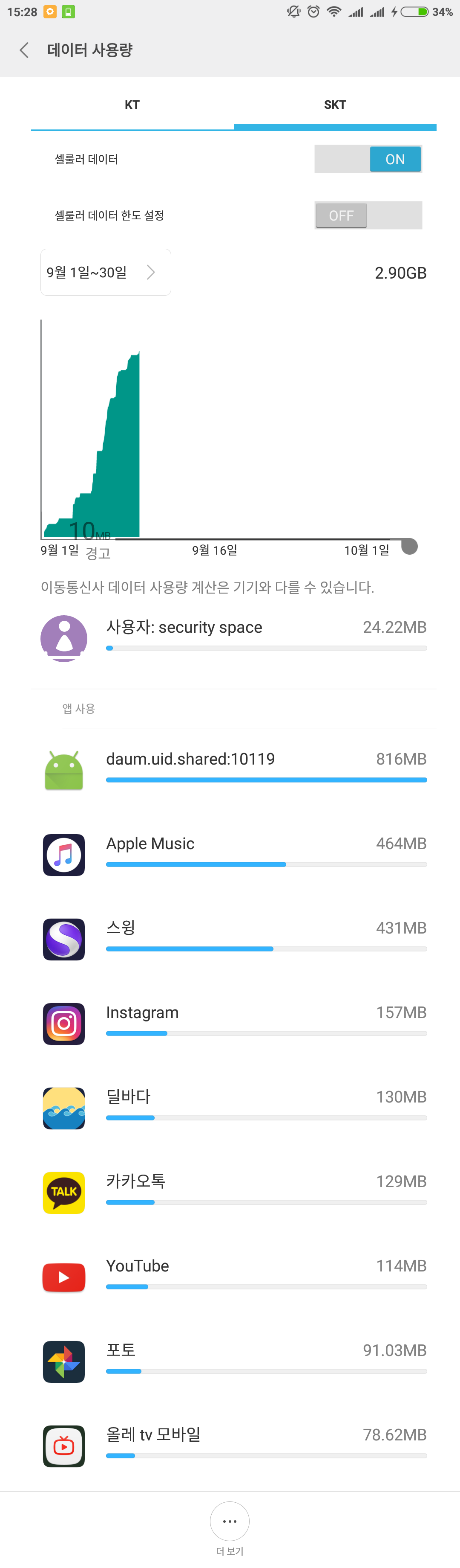 이번달 얼마나썼나 보니까 3기가정도 썼는데 괜찮네요 사실 20기가가 목표긴한데.. 올레티비를 더 자주 봐야겠습니다.. 10기가 밑으로 쓰는거면 사실 무적칩 쓰는 이유가 없거든요 ㅠㅠ