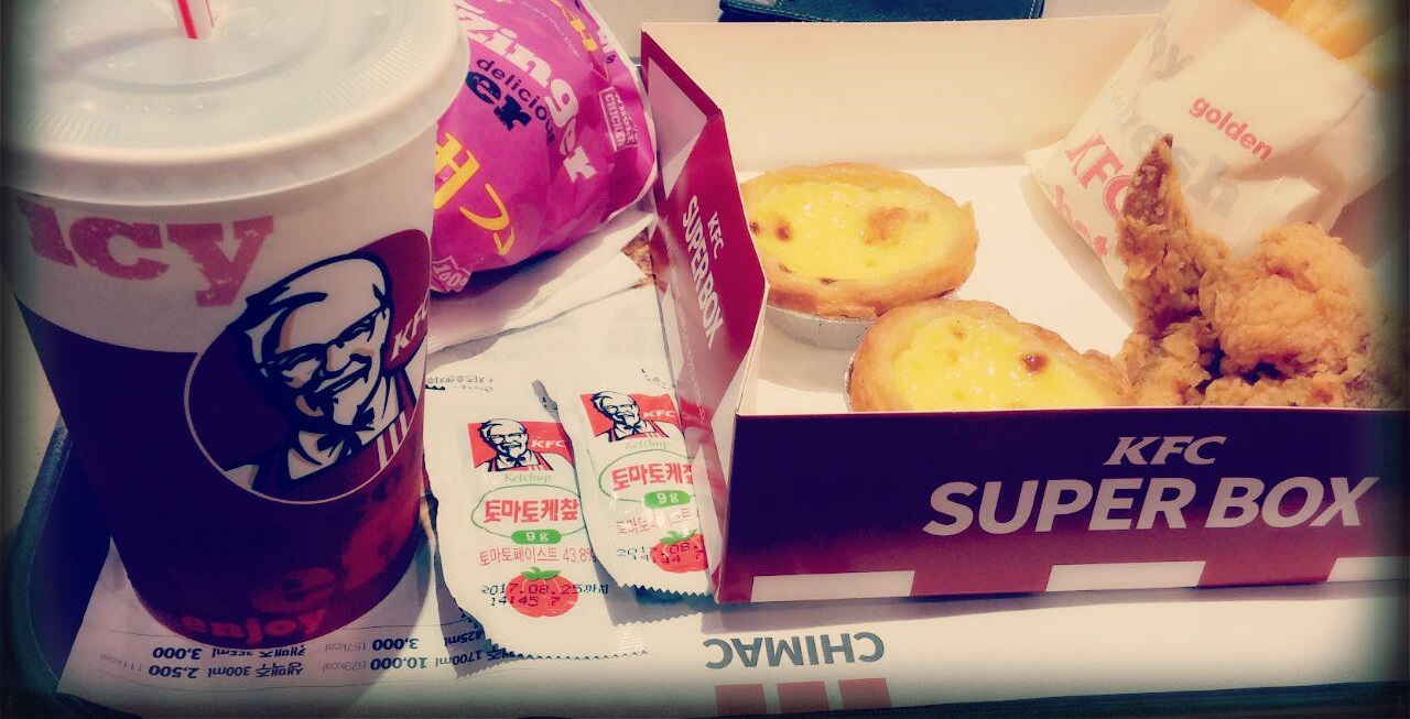 징거버거 마일드, 감튀, 치킨한조각, 에그타르트(영수증), 콜라