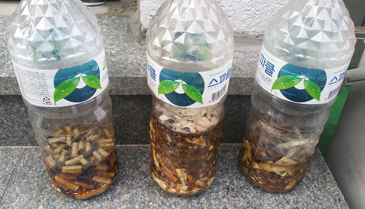 원룸 사는데 누가 아침에 공용 현관 앞에 이런 걸, 이렇게 줄 맞춰 가지런히, 예쁘게 내놓았지 뭐예요. 나름 재활용품이라고 생각한 모양인데... 누군지 몰라도 한가위 선물로 순도 높은 니코틴 한 사발을 배달해 드리고 싶네요. ^_^