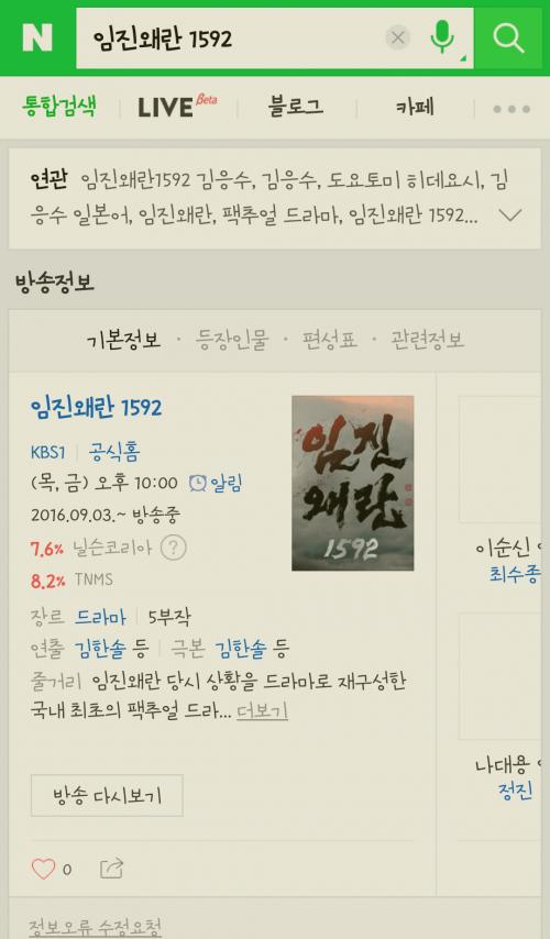 p.s 김응수씨가 분한 도요토미 히데요시 부분만 잠깐 봤는데... 재밌더라구요; 히데요시가 원숭이라 불리며 조롱당하고 그러던데... 연기가 좋으니 몰입도 잘되더라는;;