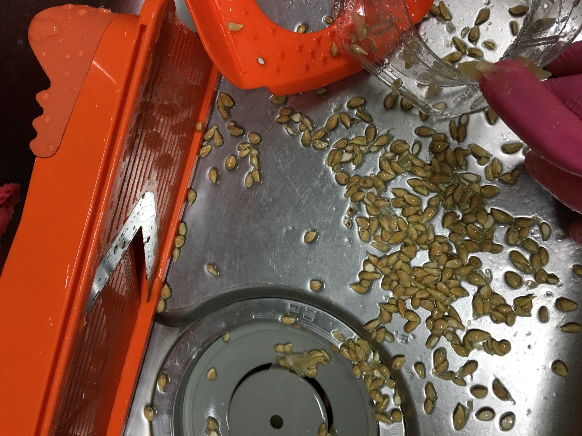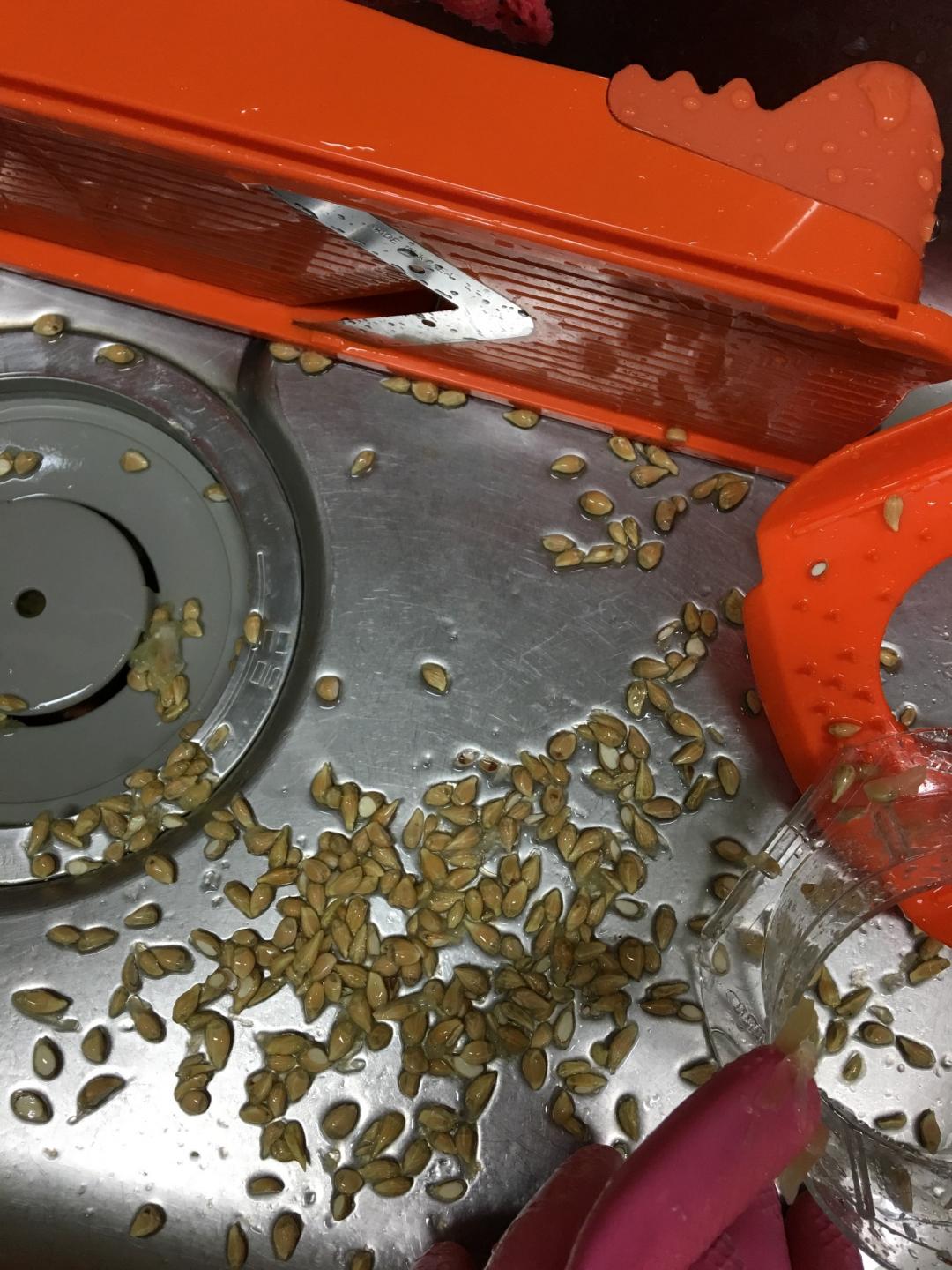 저는 귀찮아서 알맹이만 빼서 녹즙기로 죽죽 즙짜서 얼렸어요.