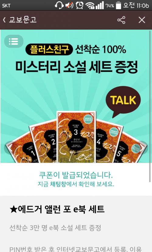 교보문고(카카오톡 플러스 친구) 에드거 엘렌 포 소설 전집 받을 수 있네요!