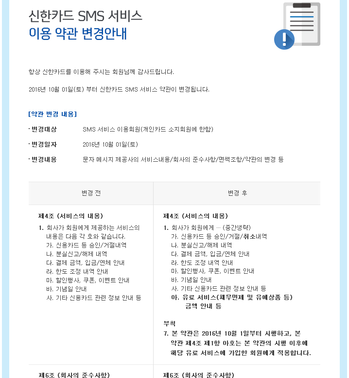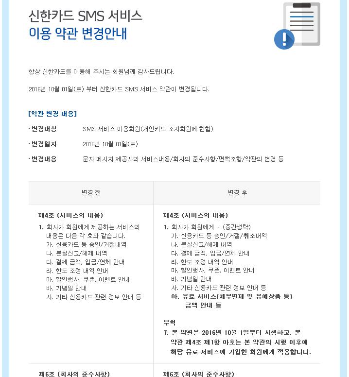 신한카드 SMS 약관 변경 내용 중에, '체무면제 및 유예상품'에 관한 내용도 있네요. > 자유게시판