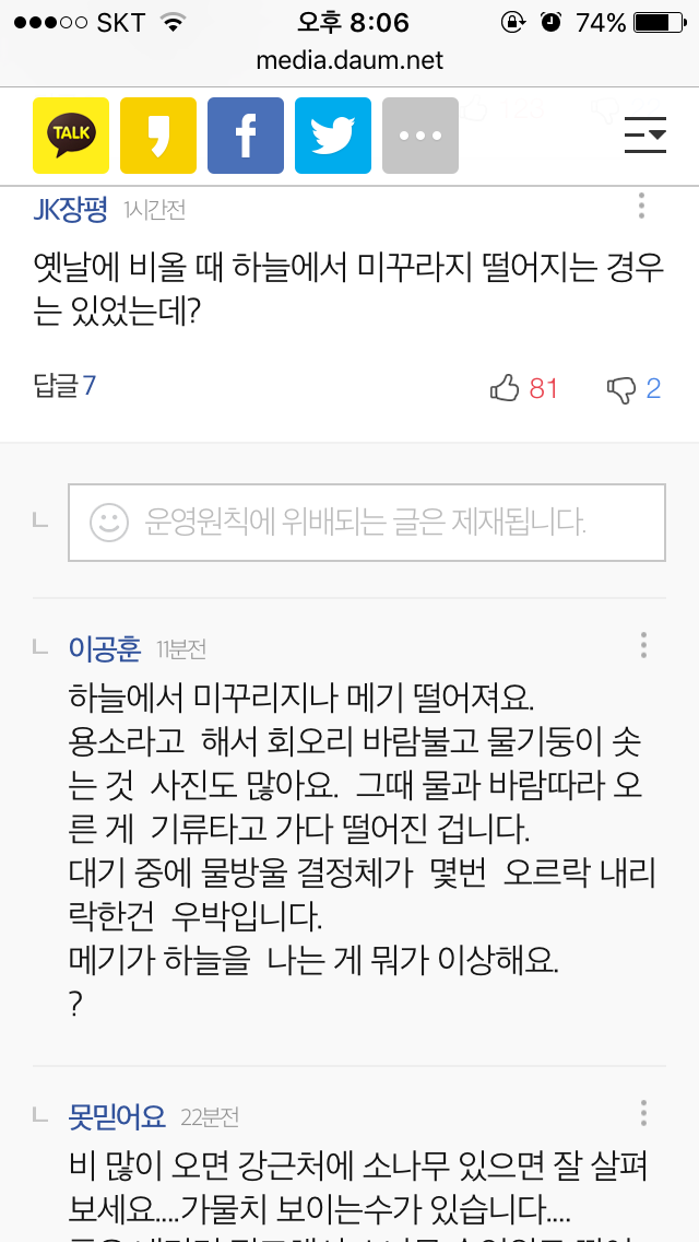 쭈르륵 달린 댓글 땜에 당황했어요.