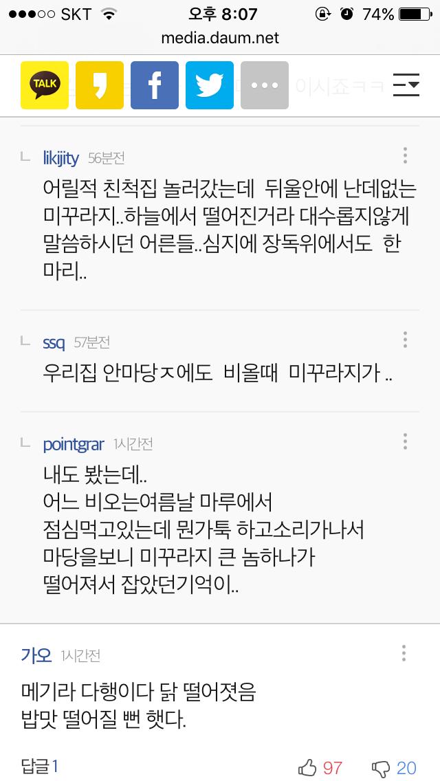 미꾸라지가 하늘에서 떨어지는데 대수롭지 않은건가요? ㅎㅎㅎㅎㅎ