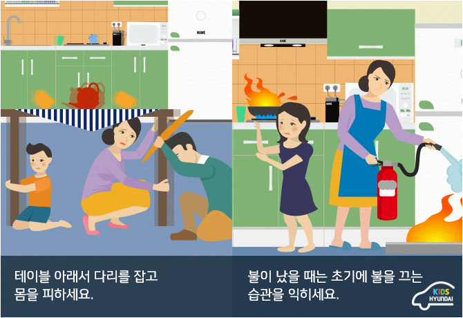 부모님들께도 꼭 당부하세요. 탁자 밑이나 밖으로 빨리 뛰어나가시라고요.