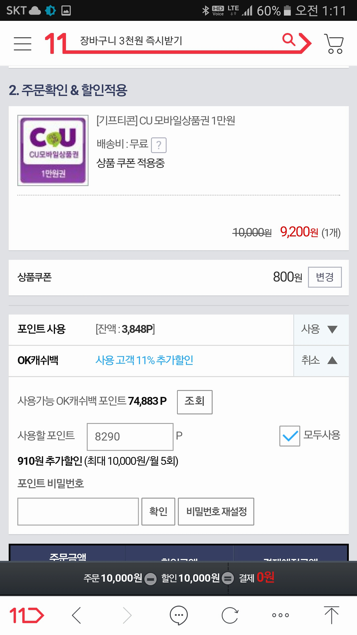 Okb 어차피 현금이나 마찬가진데 okb으로 결제시 추가11%가 가능하니 현금보다야 좀더 좋죠