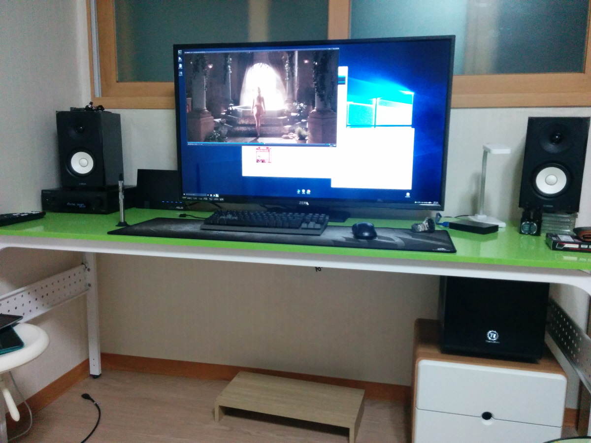40인치입니다.. 책상은 제가 초록색을 좋아해서 일루러 ㅎ |