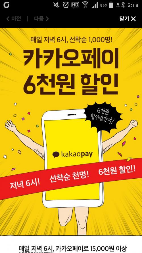6시 배달의민족 카카오페이 6000할인 > 자유게시판