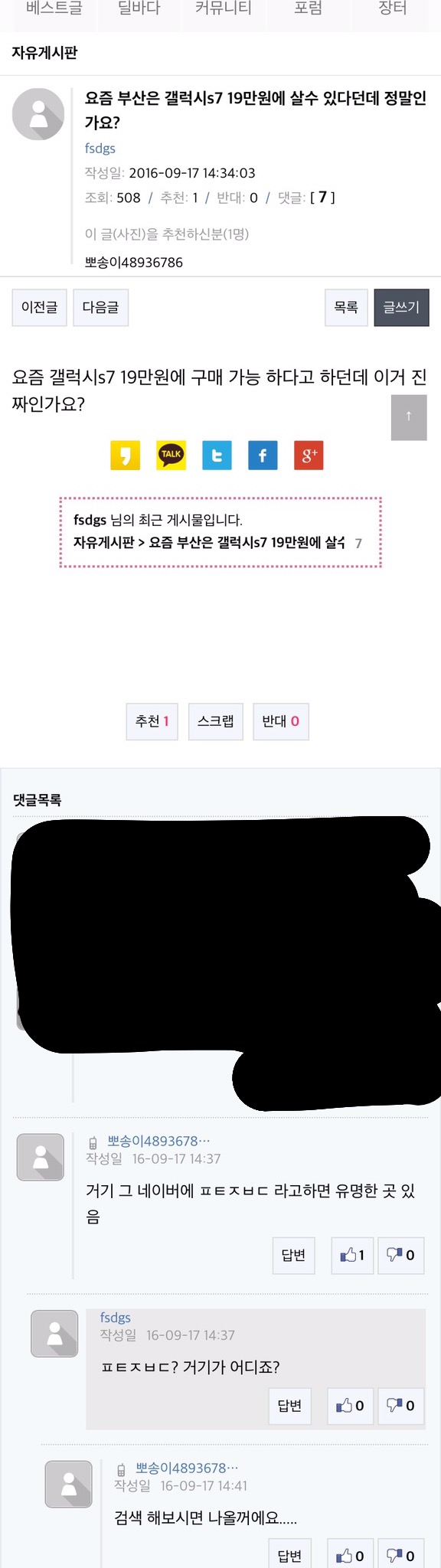 저런 사람들 특징이 자기가 질문글 올리고 자기가 대답하는 거더라구요... ㅋㅋㅋㅋ |