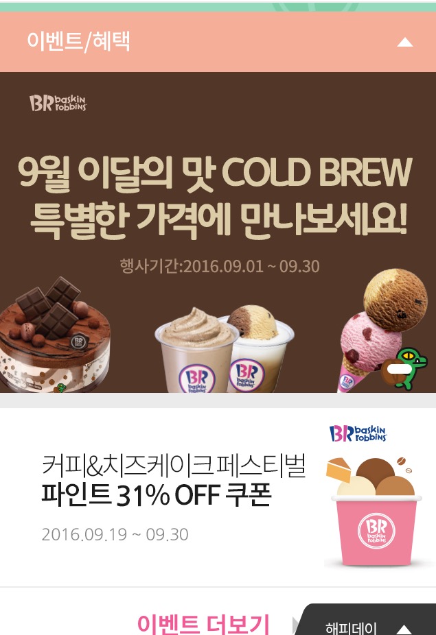 메뉴중 2번째 <커피&치즈케이크 페스티벌 (파인트31%OFF쿠폰)> 클릭