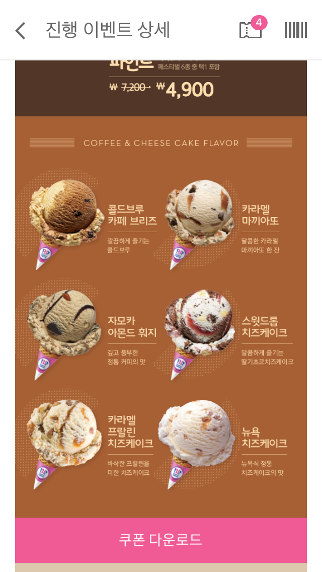 해피포인트앱 배스킨 파인트 4900원 쿠폰