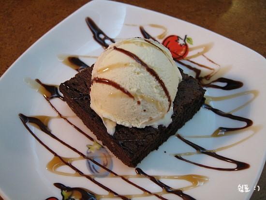 따끈한 호두가 들어간 브라우니에 바닐라 아이스크림