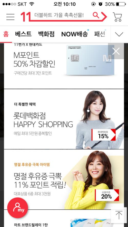 오늘 11번가는 롯백 15% 행사하는데...