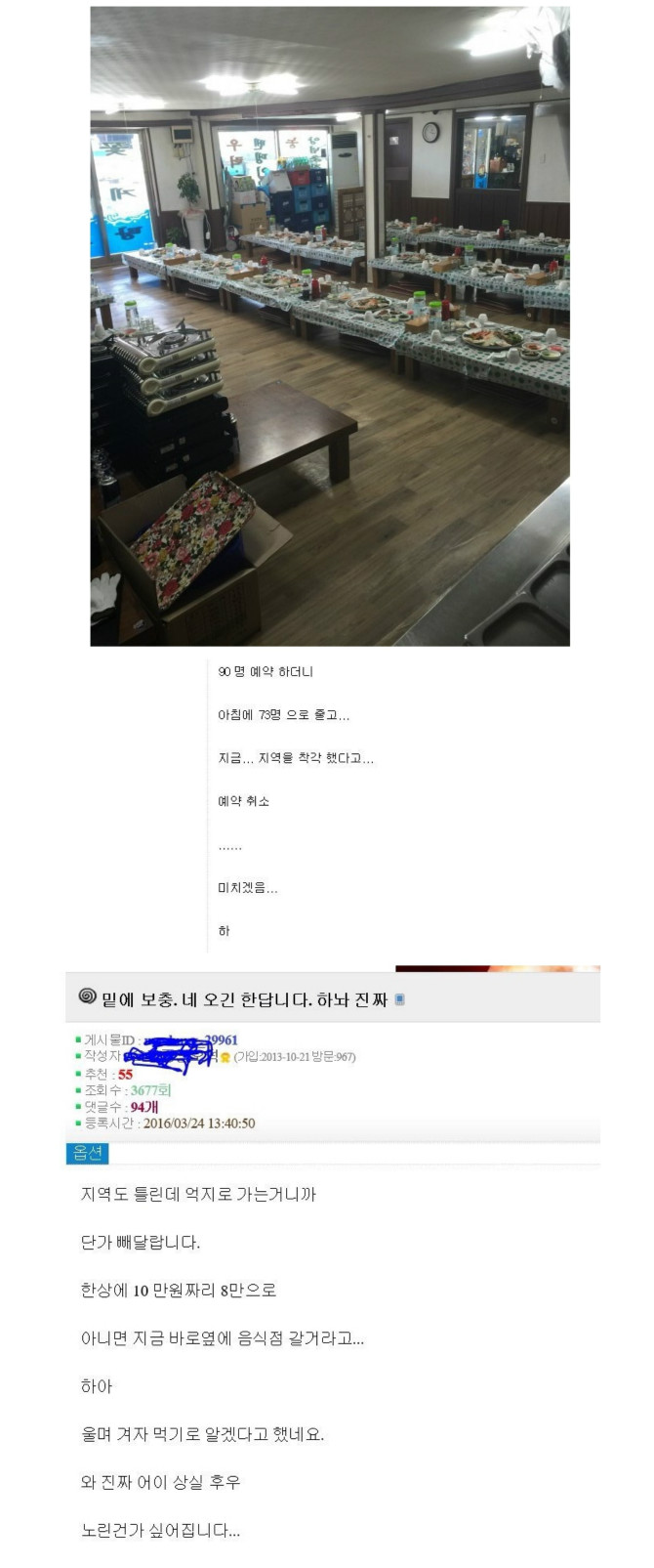 횟집 90명 단체손님 예약취소 > 자유게시판
