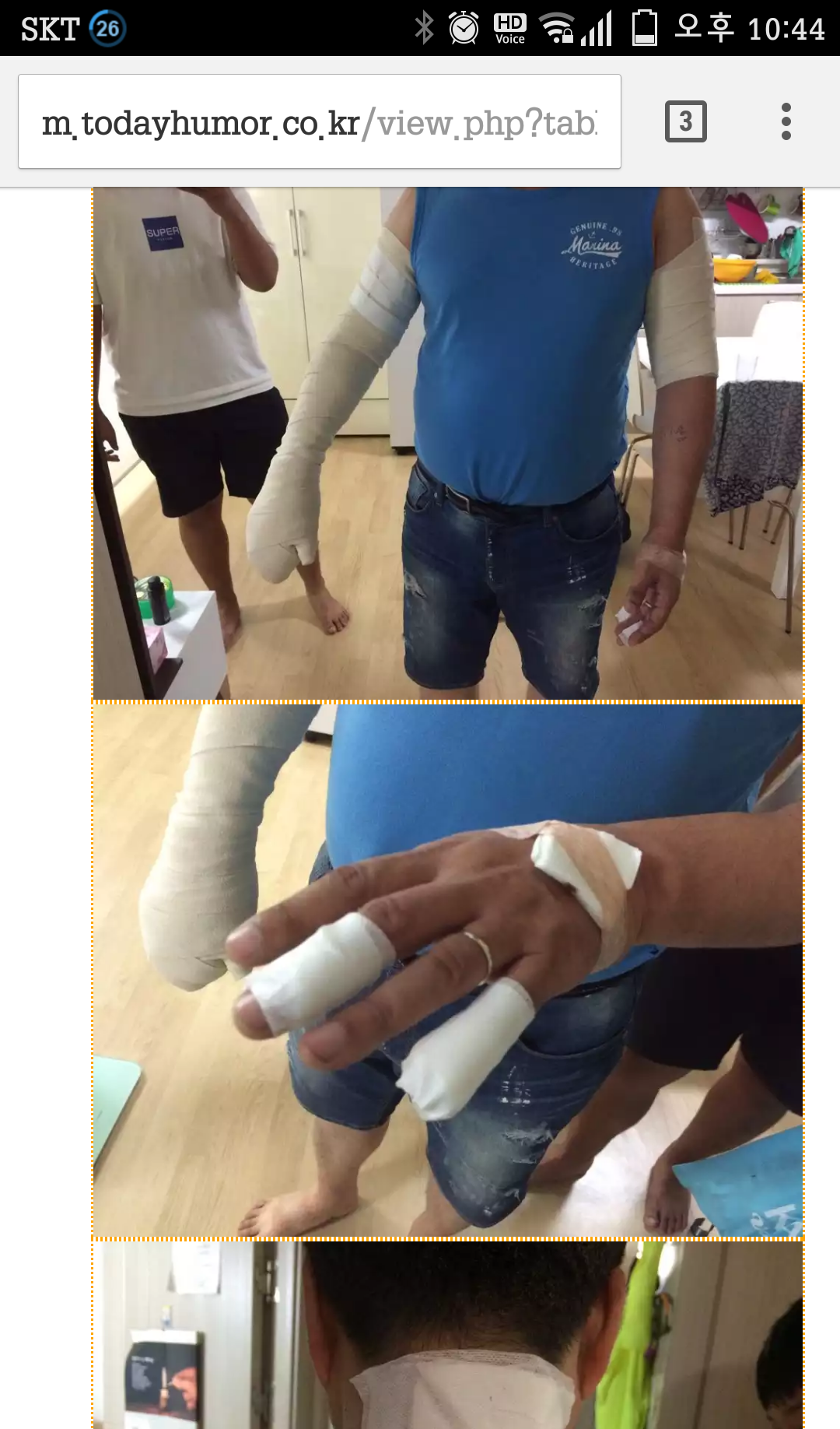 한쪽팔 완전 붕대 칭칭감으셨고
