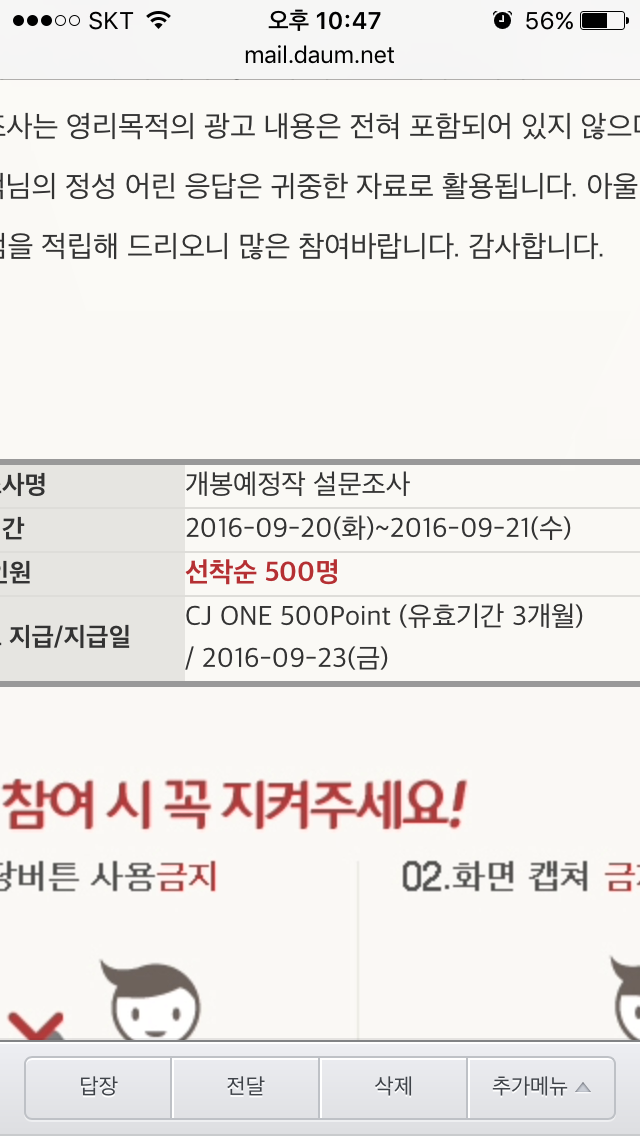 전 설문조사 메일 받은 적이 별로 없어서 기억이 안나요 ㅋㅋ | ||