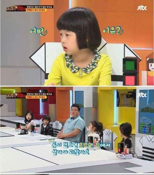 애들 있는 걸 인식못하고 이런저런 말을 다하는 어른들인데 애들이 저렇게 생각 안하면 이상한거죠. | ||
