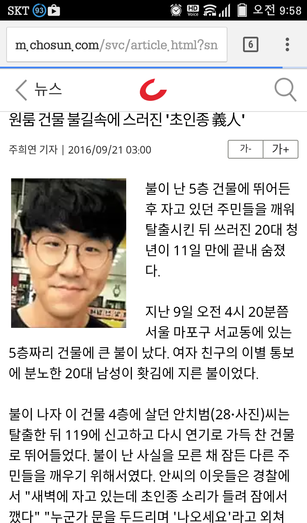 고작 헤어진걸로 불지른 미친놈 때문에 의로운 청년만 희생 됐네요.