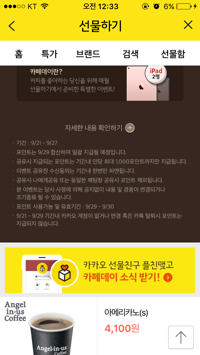 며칠전에 카페베네 아메리카노 반값 올리시지 않으셨나요? 아니라면 죄송합니다 | ||