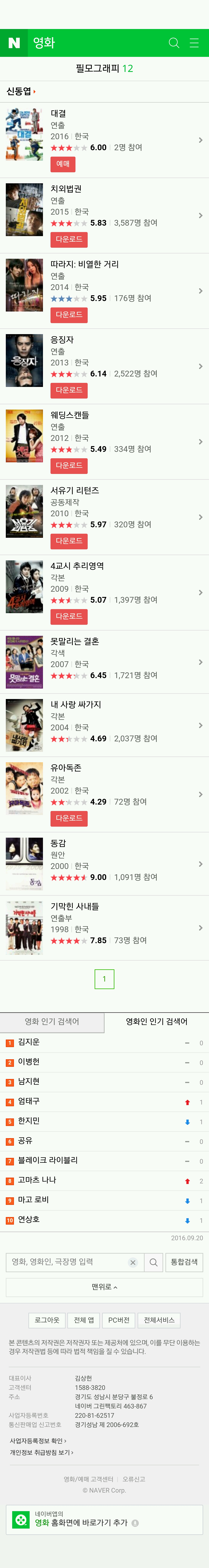 동감 이외엔 이렇다할 작품이 없군요.. 이쯤되면 투자자들을 잘 홀리는 말빨을 갖고있거나 친분이 엄청나거나 둘중에 하나일듯 하네요 ㅋㅋ |