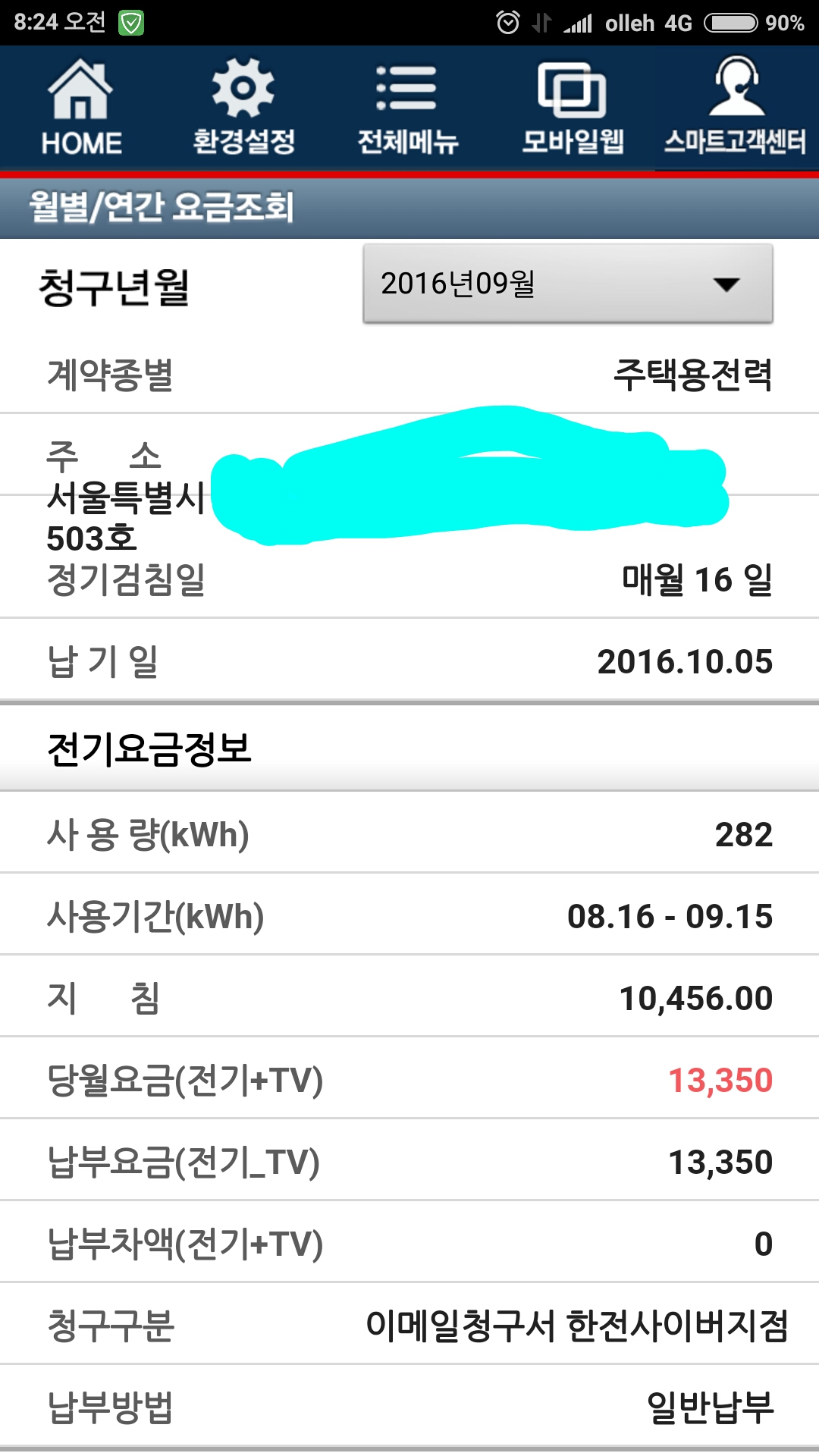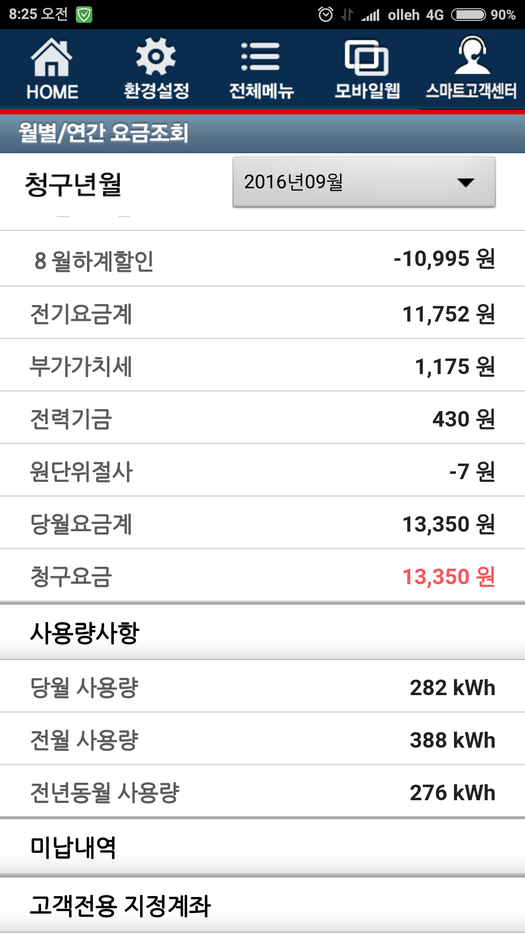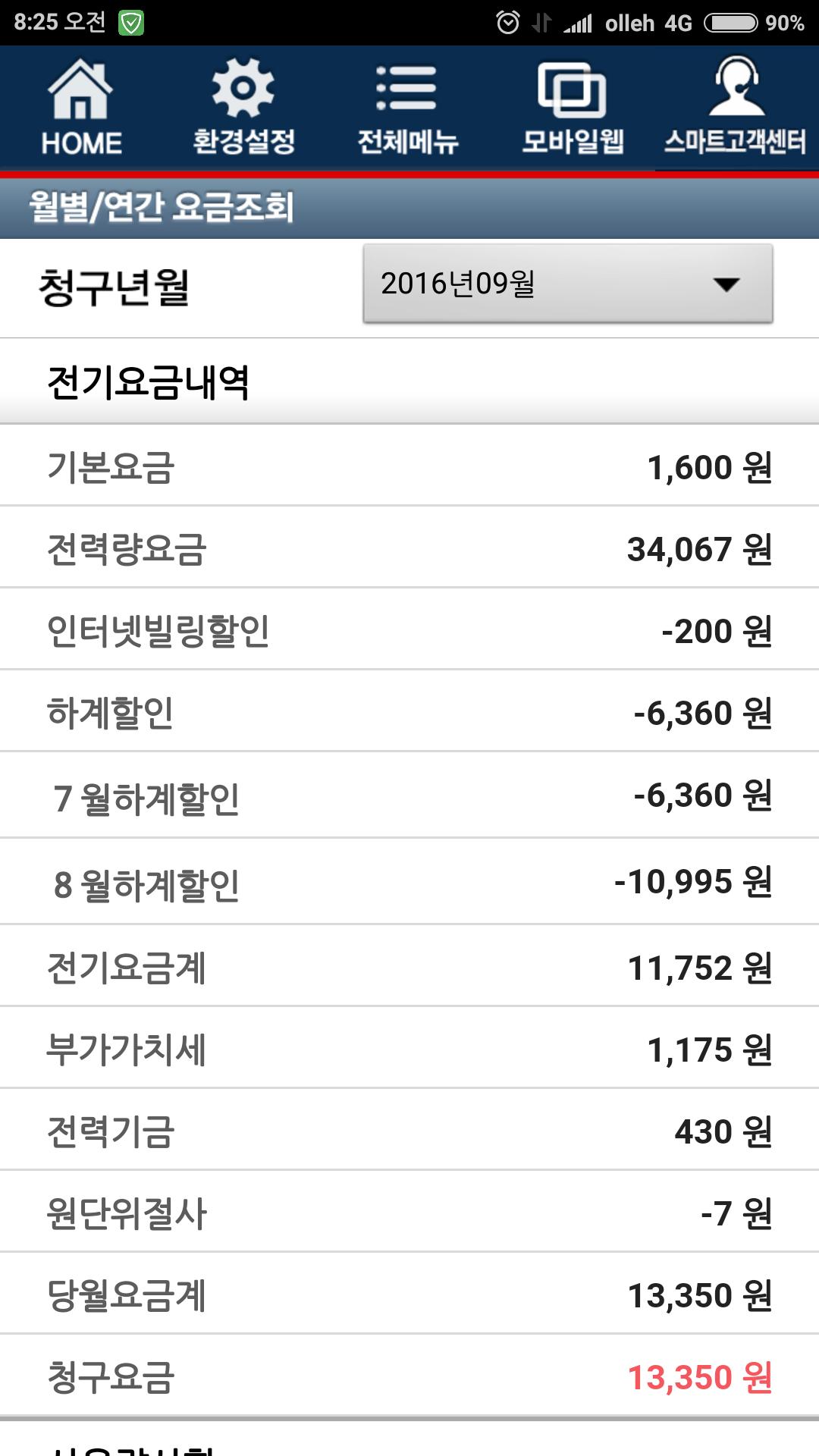 8월16일부터 사용분이고 전달 할인을 이번달에 받아서 금액이 확 줄었네요 |