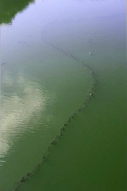 숭어 때 일렬로 1cm 앞도 안보이는 녹조 사이를 해쳐가...