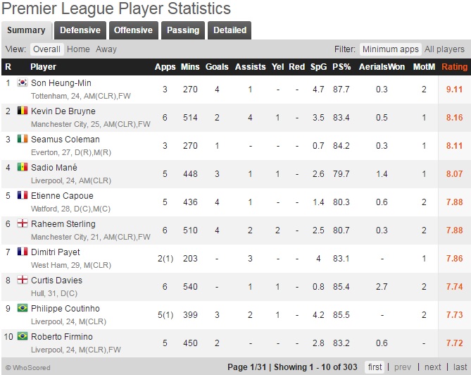 손날두 후스코어드 평점 1위네요.