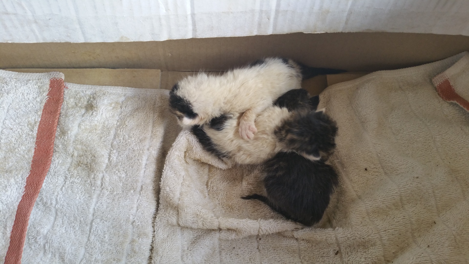 처가집 창고에 길냥이가 새끼고양이를 두고 갔네요