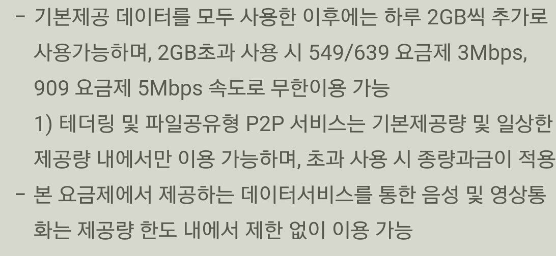 위 내용은 요금제 유의사항에 나온건데요.